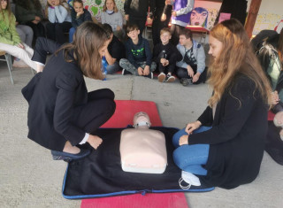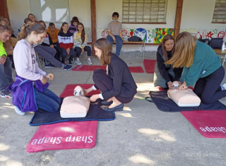 Studentky Střední zdravotnické školy Olomouc si pro žáky připravily čtyři stanoviště, na kterých zopakovaly žákům nejdůležitější zásady poskytování první pomoci a názorně předvedly praktické ukázky. Všichni žáci si postupně vyzkoušeli i praktický nácvik první pomoci (nepřímou masáž srdce, ošetření popálenin, obvazové techniky….).