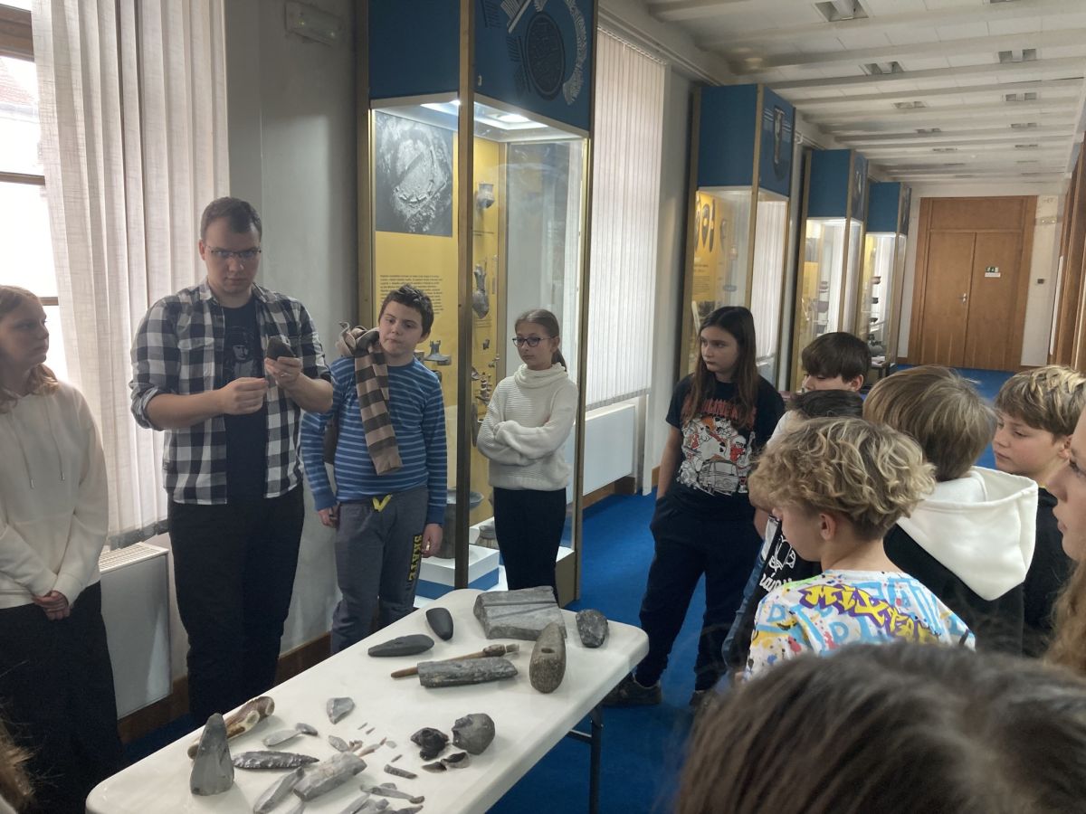 V pátek 21. listopadu se žáci šestých tříd zúčastnili exkurze v Moravském zemském muzeu v Brně. Žáci si mohli osahat a vyzkoušet různé pravěké nástroje – od jednoduchých kamenných pomůcek přes bronzové artefakty až po železné nástroje. Vyzkoušeli si, jak pravěcí lidé v neolitu vrtali nebo brousili nástroje. Do rukou se jim také dostal skutečný mamutí zub. Na závěr si vyzkoušeli práci archeologů, když zkoumali a analyzovali pravěký hrob.