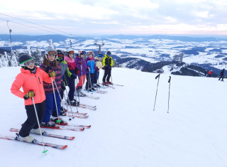 Na lyžařský výcvik jsme dojížděli ski busem, který nás vyzvedával přímo u penzionu, což byla obrovská výhoda a všichni jsme ji vítali. V rámci každodenního výcviku byli žáci rozděleni na začátečníky, mírně pokročilé a pokročilé a od druhého dne již všichni jezdili na vleku a trénovali na čtvrteční závod. V rámci volného půldne si žáci vyzkoušeli jízdu na bobové dráze, což se všem velmi líbilo.