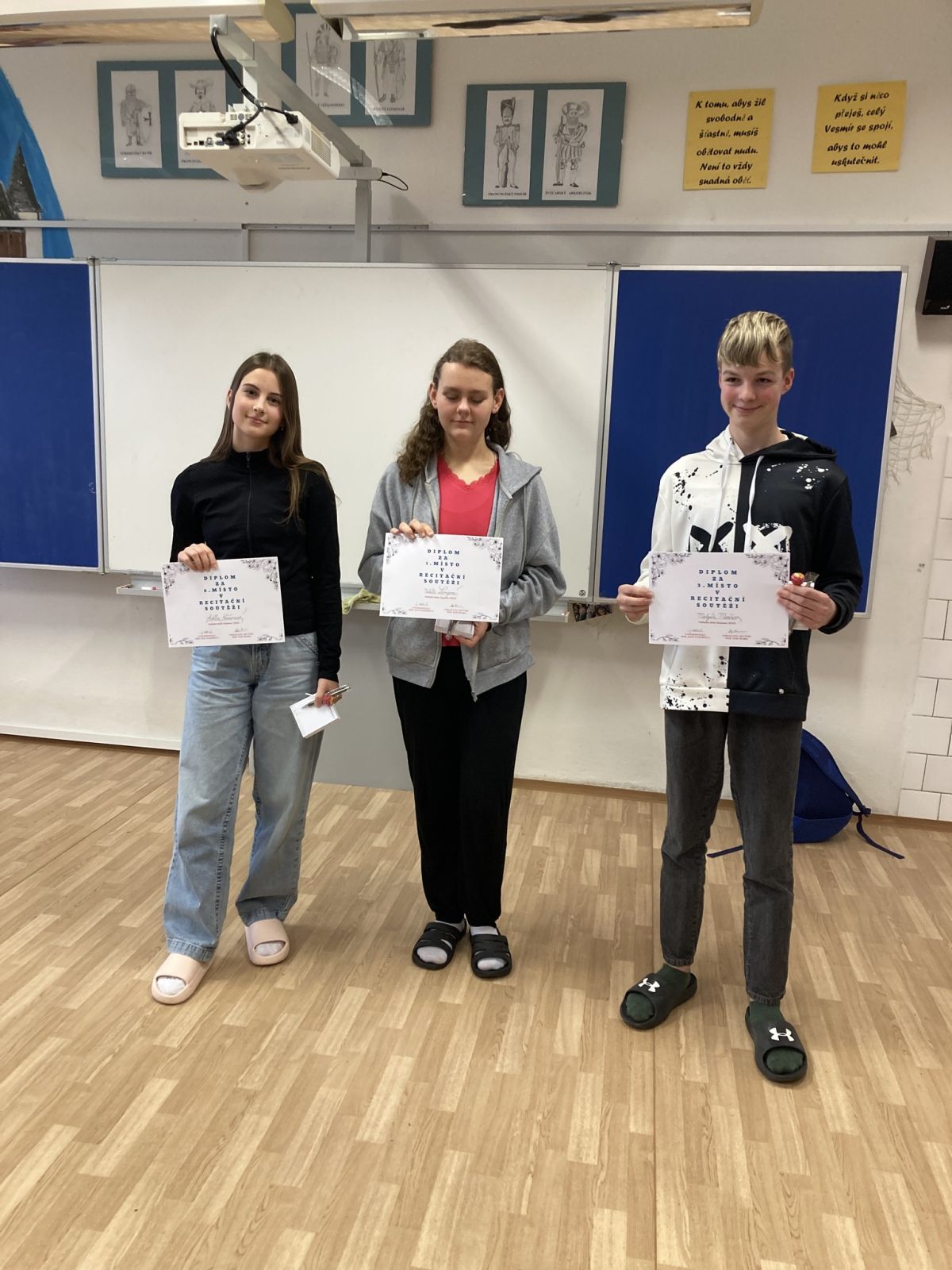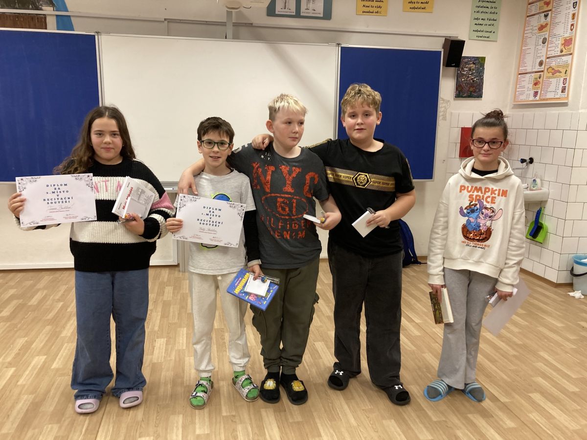 Na začátku listopadu jsme pro žáky 2. stupně uspořádali tradiční recitační soutěž. Všichni zúčastnění podali skvělé výkony . Nejlepší recitátoři si odnesli diplomy a věcné ceny .
